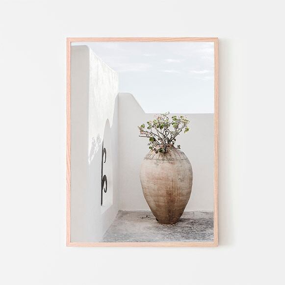 大きな壺と花 / アートポスター 風景写真 アートプリント 2L〜 フラワー 自然 青空 壁 ホワイト トロピカル