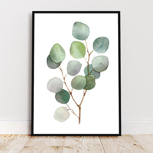 ユーカリ / アートポスター 水彩画 イラスト アートプリント 2L〜 観葉植物 葉っぱ 枝 プラント ナチュラル