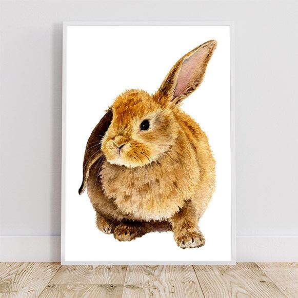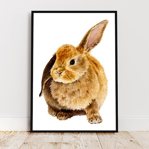 うさぎの水彩画。子供部屋にもぴったりな可愛いイラストです。出産祝いにもオススメ。