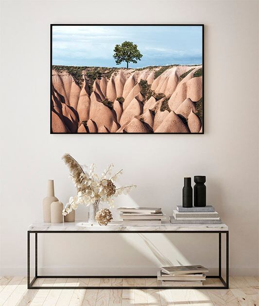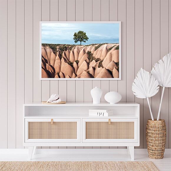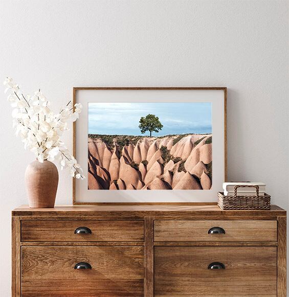 丘の上の一本の木 / アートポスター 風景写真 カッパドキア 自然 トルコ 谷 岩 アートプリント 2L〜 青空