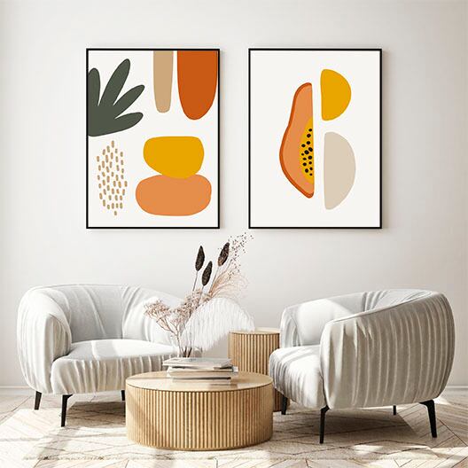 パパイヤをモダンなシェイプで描いた夏らしいイラスト。(写真2枚目の左のポスターは別売りになります。)