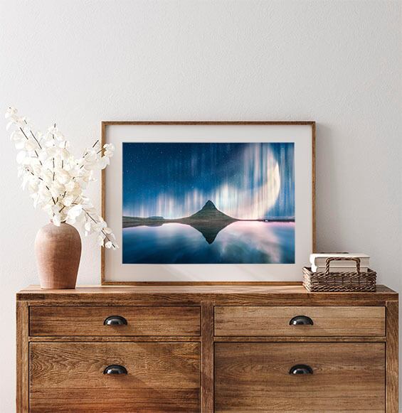 キルキュフェットル山とオーロラ / ポスター 写真 自然 アイスランド 風景 ランドスケープ アートプリント 2L〜