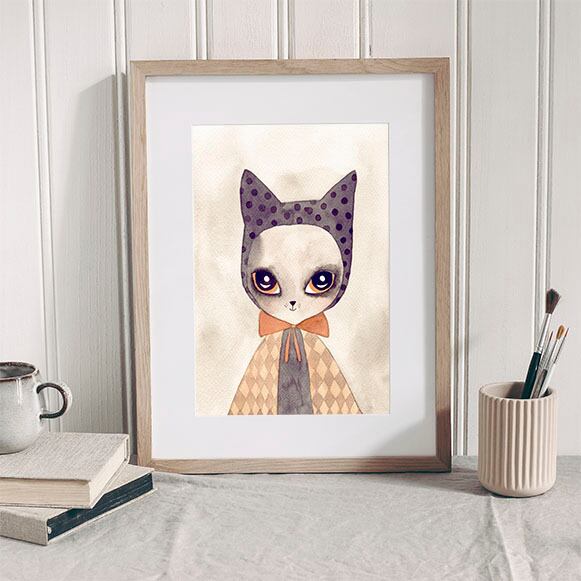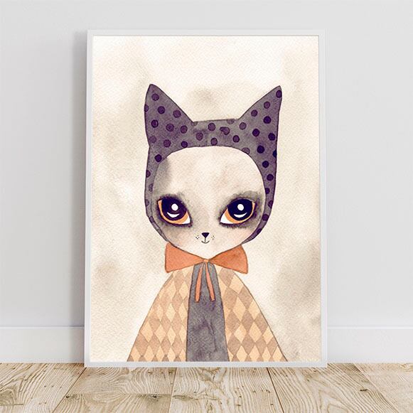 マントをした猫 / ポスター 写真 クリエイティブ 水彩画 ウォーターカラー イラスト アートプリント 2L〜