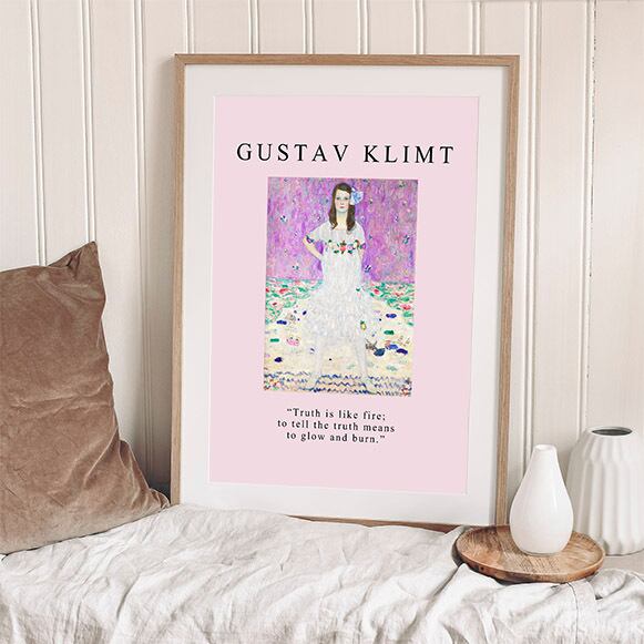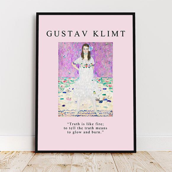クリムトの名言、“Truth is like fire; to tell the truth means to glow and burn.”(真実というのは炎のようなものだ。 真実を述べることは、輝いて燃えるということだ。)と名前を入れています。