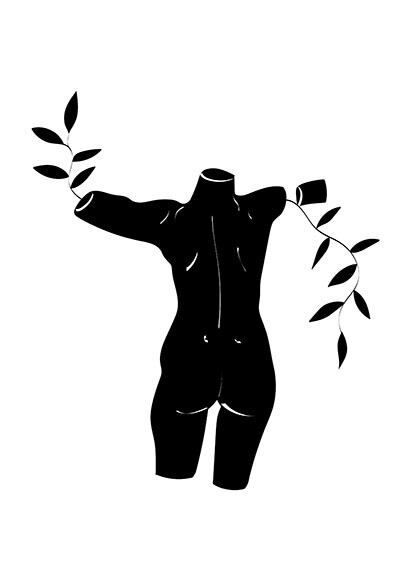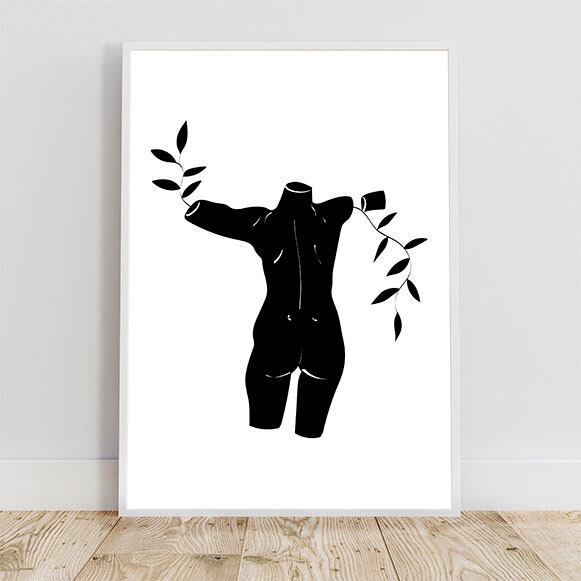 女性の体 / ポスター 写真 ミニマル イラスト 形 美 上半身 黒 植物 シルエット