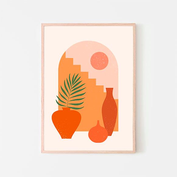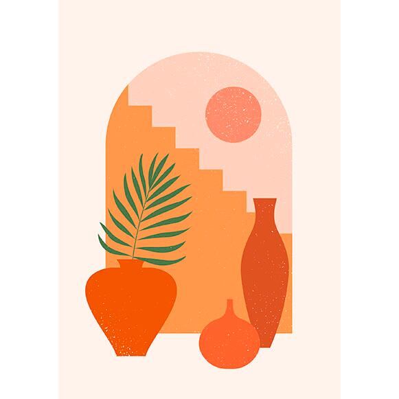 砂漠と植物 / ポスター 写真 ミニマル 現代美術 モダン 階段 太陽 壺 花瓶 ボーホー テラコッタ アートプリント