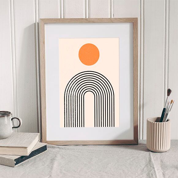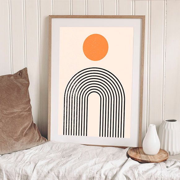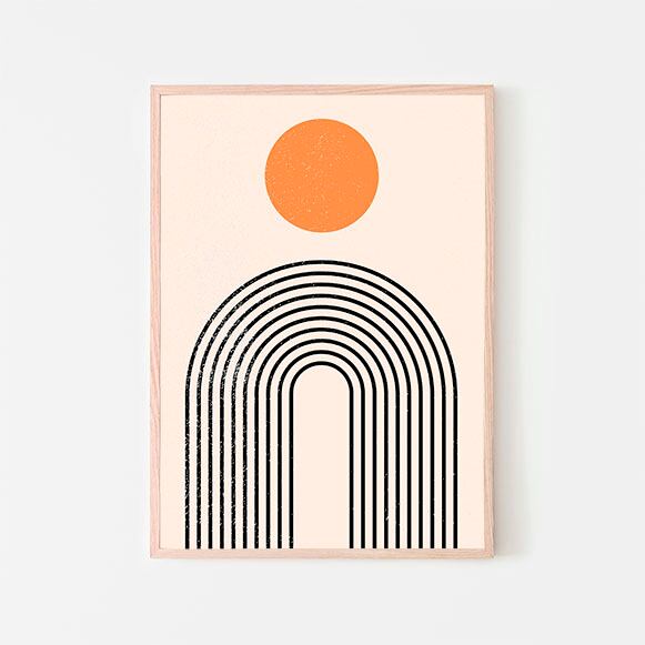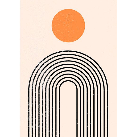 規則的なラインと球体のコンテンポラリーアート。ミニマリストにぴったりな一枚。虹と太陽を組み合わせたようなスタイリッシュなデザインです。どんなお部屋にも馴染みます。