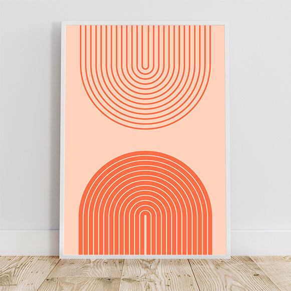 テラコッタカラーのアブストラクトアート。ミニマリストにぴったりな一枚。虹のようなシェイプを二つ配置したシンプルでスタイリッシュなデザイン。