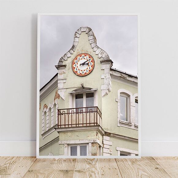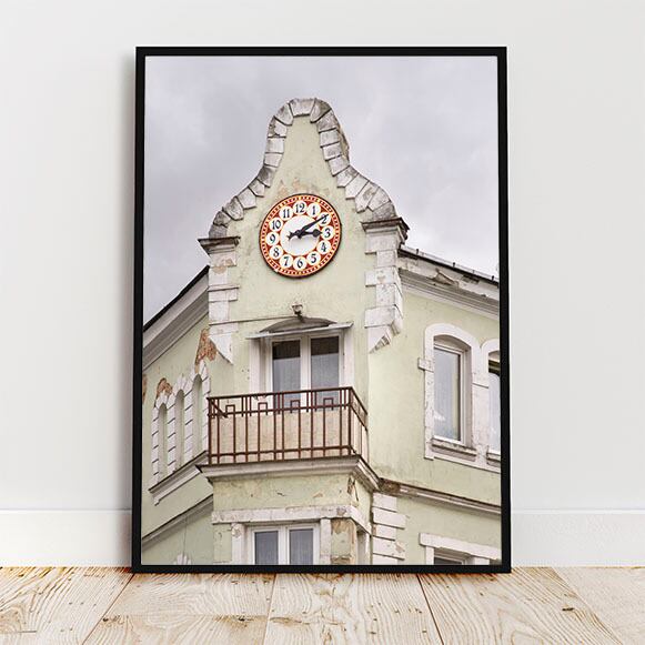 時計のあるポーランドの古い家の一角 / ポスター 写真 建物 ヨーロッパ 東欧