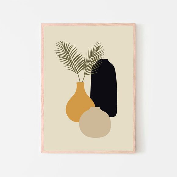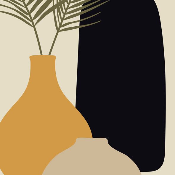 花瓶とヤシ / ポスター 写真 セラミックポット ミニマル シェイプ クリエイティブ イラスト イエロー 壺 vase