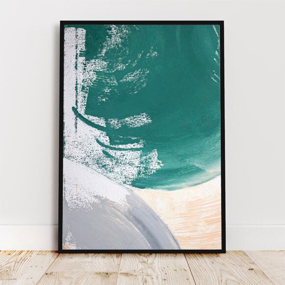 グリーン系アブストラクト / アートポスター 写真 インテリア 2L〜 アクリル画 絵画 抽象画 緑 グレー イエロートーン
