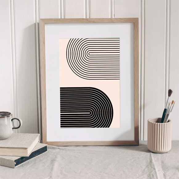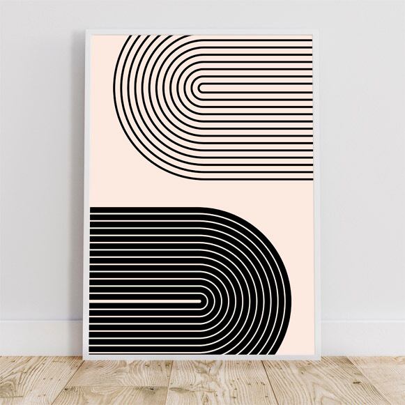 虹のようなシェイプを二つ配置したシンプルでスタイリッシュなデザイン。ミニマリストにぴったりな一枚。