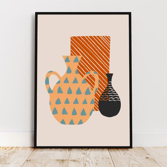 花瓶や植物を描いた抽象的なイラスト。どんな空間にも最適なミニマリスティックな一枚です。