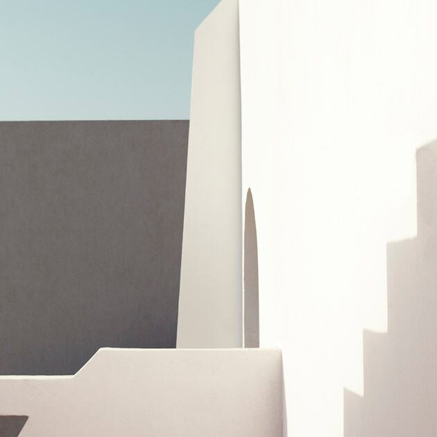 階段や影、隙間に見える青空の色がマッチしたミニマルな一枚。