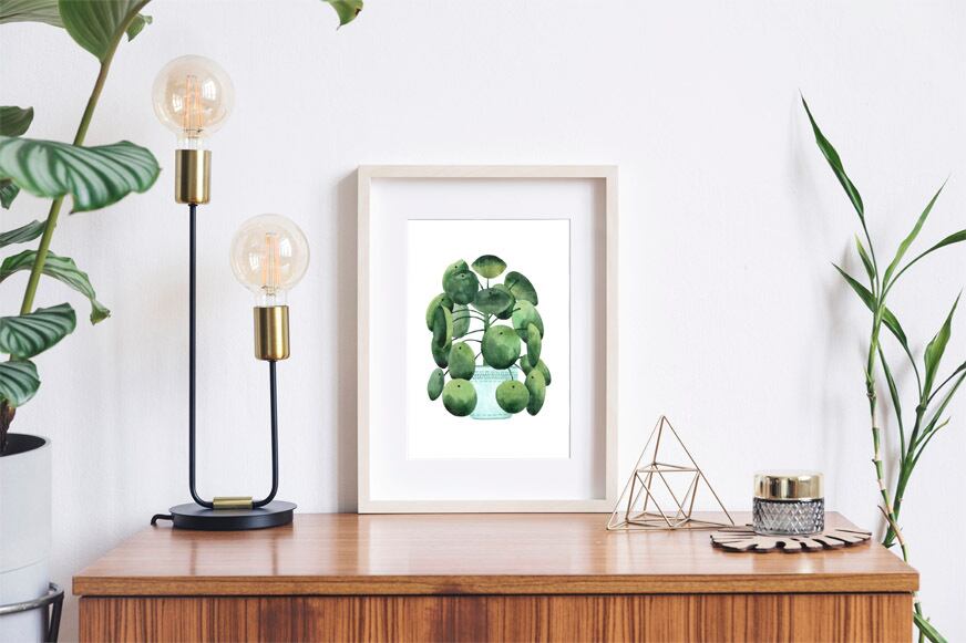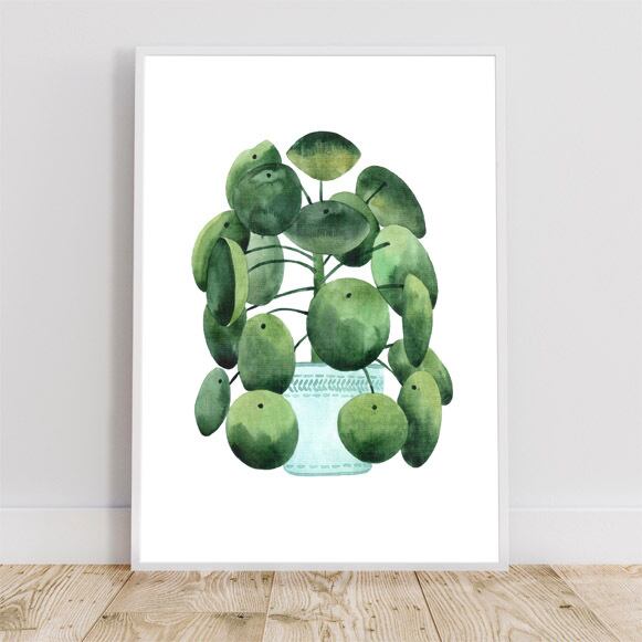 ピレアペペロミオイデス / アートポスター 水彩画 観葉植物 カラー グリーン インテリア 2L〜 自然 絵