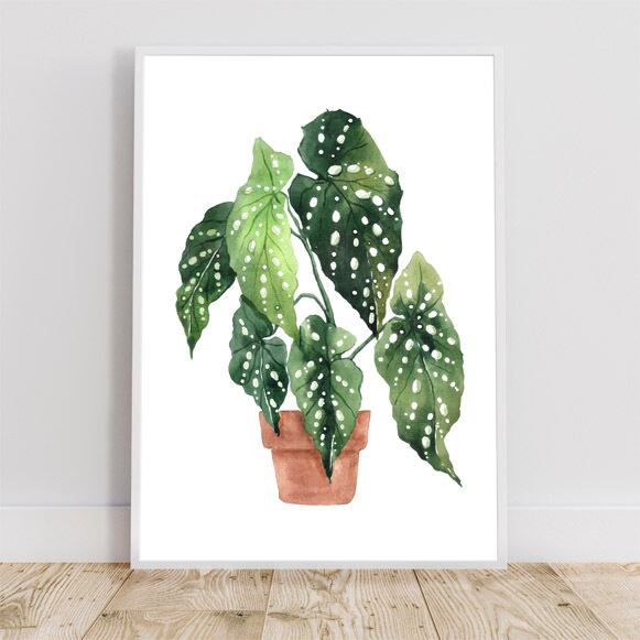 水玉模様の葉が可愛いベゴニア・マクラータの絵。本物の代わりに飾っても良いですね。様々な空間に合わせやすいです。