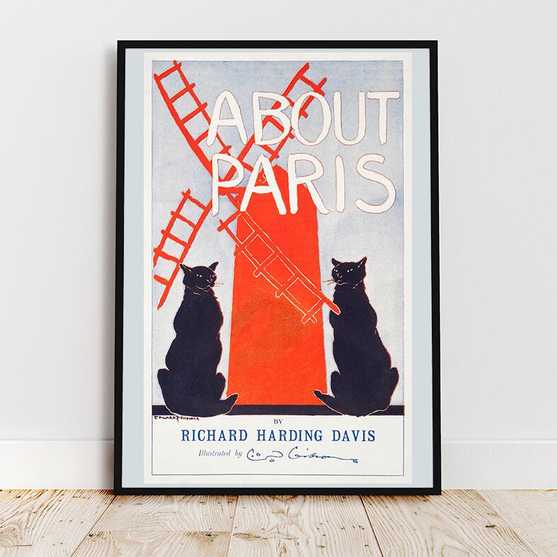 アートポスター イラスト 2L〜 ヴィンテージポスター 黒猫 ねこ ネコ 風車 パリ
