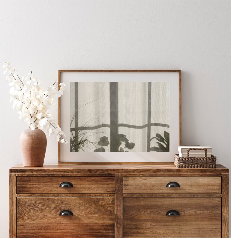 窓と植物のシンプルな影の写真。大きく飾っても小さく飾っても素敵なミニマルな一枚。