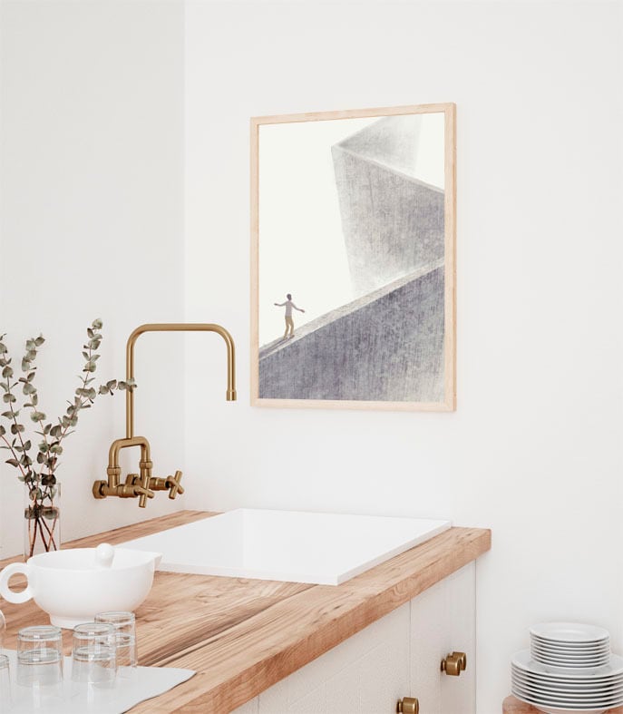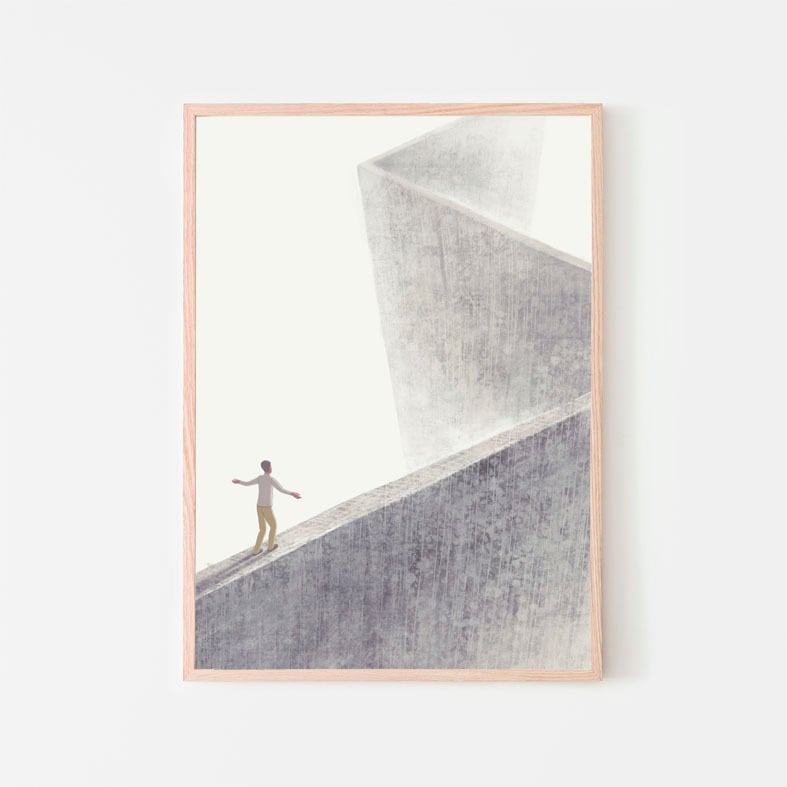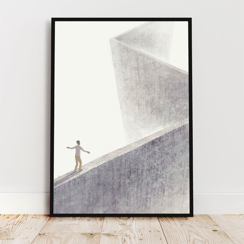 アートポスター イラスト 絵 縦長 人間 壁 アーキテクチャー 希望 自由 フリーダム ミニマル グレー