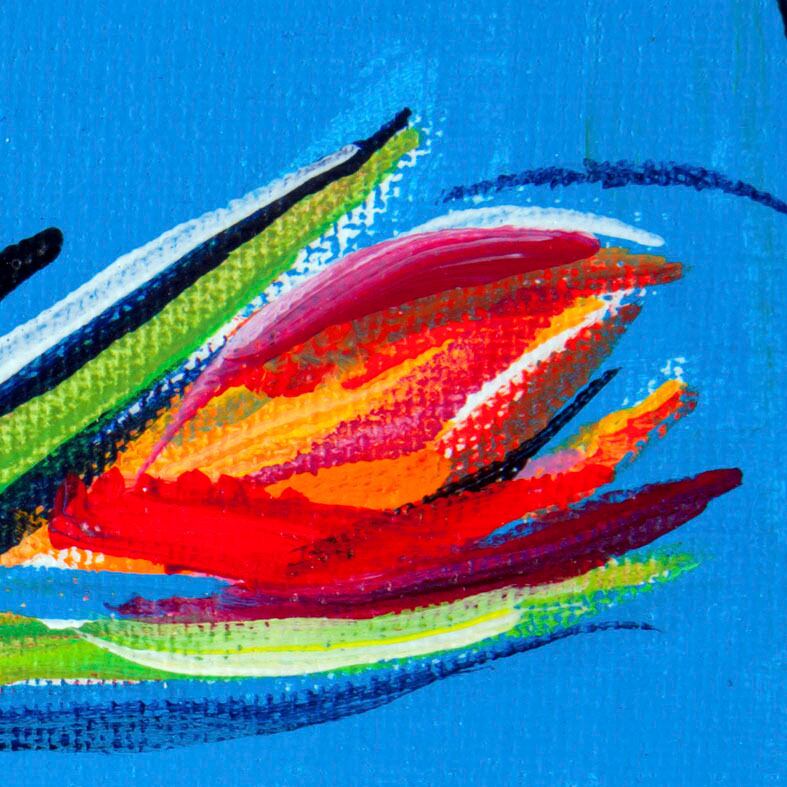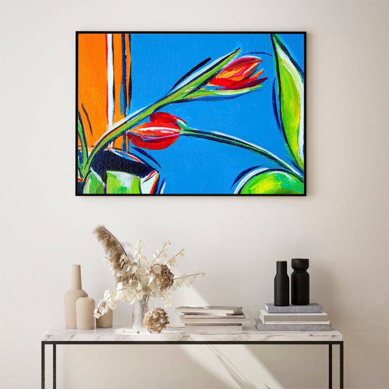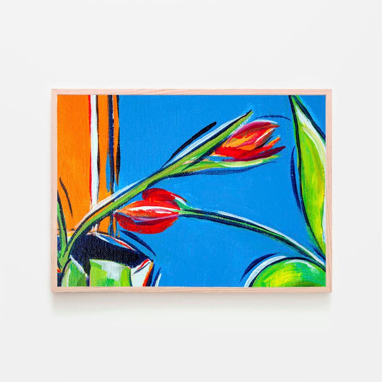 アートポスター 絵画 横長 葉 レッド アクリル 花 フラワー フォービズム オレンジ ブルー